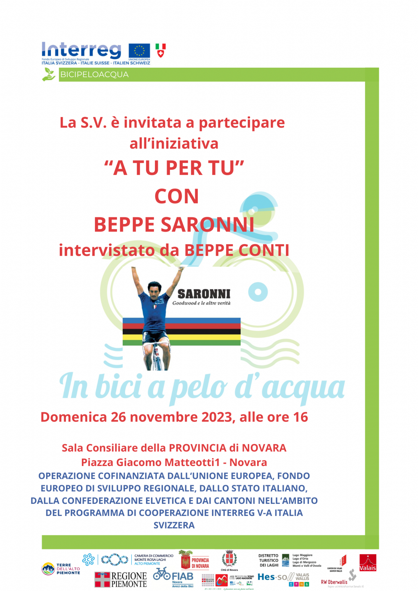 Evento organizzato dal Servizio Turismo e Marketing territoriale della Provincia di Novara all'interno del progetto In Bici a pelo d'Acqua.
