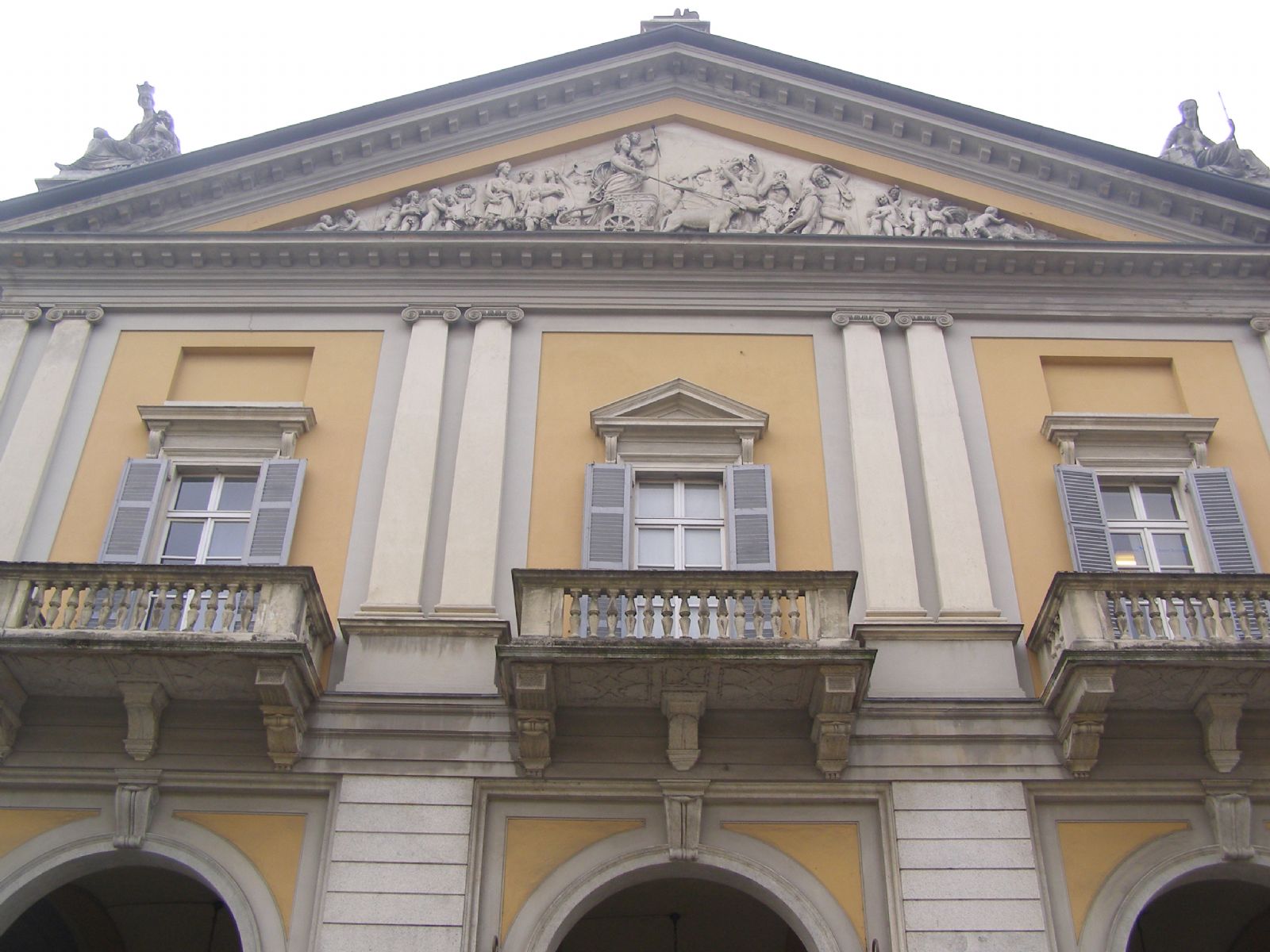 All’inizio dell’800 la necessità di avere una adeguata sede per il mercato, che a Novara dalla seconda metà del Settecento era significativamente cresciuto, in particolare per il riso ma anche per i cereali, il vino e le stoffe (panno, canapa e lino), portò alla decisione di cercare una soluzione alternativa al cortile del Broletto, in quanto insuffi ciente per immagazzinare tali prodotti. La Commissione di Pubblico Ornato, ente preposto al controllo dello sviluppo edilizio della città istituto nel 1807, incaricò nel 1816 l’ing. Luigi Orelli di realizzare un nuovo mercato dei grani; inizialmente doveva essere solo un grande porticato per proteggere merci e persone, ma via via il progetto si ampliò in un grande edificio a pianta quadrilatera su due piani con un ampio cortile interno, che andò a occupare l’intera superficie di un isolato abbattuto, collocato alle spalle della Porta Vercelli, con fronte sull’attuale corso Italia, principale via di attra-versamento est-ovest della città.L’attuale Palazzo del Mercato trova quindi la sua definizione tra il 1817 e il 1844, frutto di una seria di successivi e organici ampliamenti del nucleo originario, denominato dall’architetto Basilica Mercuriale di Novara, edificio neoclassico in cui i portici (luogo per l’incontro e lo scambio) e l’architettura con funzioni miste (commerciali, residenziali e pubbliche) convivono armonicamente nel “più vasto e magnifico edificio della città”. Inoltre la realizzazione all’interno di uno spazio ad uso borsa contribuirà a fare di Novara uno dei principali mercati cerealicoli d’Italia.Affacciato quindi sul lato settentrionale di piazza Martiri della Libertà, il Palazzo Orelli, o Palazzo del Mercato, è dotato di un elegante porticato che corre su tutti e quattro i lati. La facciata principale, in corso Italia, è ornata da due rampe di scale, conclusa da un frontone decorato da un altorilievo in arenaria e marmo opera di Gerolamo Rusca con sculture allegoriche che rappresentano il Trionfo di Cerere e Bacco: la dea della terra coronata da spighe di grano e il dio del vino sono su di un carro trionfale circondato da putti e baccanti. Inoltre vennero collocate ai vertici del timpano tre statue allegoriche: a sinistra la rappresentazione dell’Acqua, al vertice dell’Amor Patrio (rimosso alcuni anni fa) e alla destra la Terra. L’apparato iconografico andava a definire l’immagine del Palazzo del Mercato quale luogo di scambio dei prodotti agricoli reso necessario e possibile grazie all’operosità dei cittadini (rappresentati dall’Amor Patrio) ma anche grazie alla fertilità della terra e alla ricchezza d’acqua proprie del territorio novarese (celebrate dalle due statue citate, opere di Giuseppe Argenti). Nell’atrio di ingresso vi trovano invece collocazione le statue di cinque personalità di giuristi ed economisti: Bandini, Genovesi, Verri, Gioia, Romagnosi, realizzati da scultori ottocenteschi operanti nel Novarese. Il riconoscimento a questi grandi studiosi fu voluto da Giacomo Giovanetti, eminente figura della Novara della prima metà ‘800 e consigliere del Re Carlo Alberto. L’insolita presenza, in un edificio pubblico italiano, di monumenti dedicati a personaggi delle scienze, anziché a soggetti mitologici o della storia antica, colpì l’attenzione di molti intellettuali di passaggio a Novara, tra cui il celebre economista liberale inglese Richard Cobden. Sul lato sud, verso piazza Martiri della Libertà, sono ancora visibili le palle di cannone che colpirono l’edificio nel 1849, durante il bombardamento della città da parte delle artiglierie austriache a seguito della Battaglia della Bicocca, avvenuta il 23 marzo nelle campagne attorno Novara. Nei primi anni ’60 del Novecento il grande cortile interno e parte del palazzo subiscono importanti lavori che portano alla realizzazione dell’attuale salone contrattazioni merci e, nel seminterrato, dell’auditorium della Camera di Commercio di Novara, avente una capienza di circa 400 persone. Oggi nell’edificio trovano sede, oltre alla Sala Borsa e all’auditorium, diversi uffici, negozi e attività di ristorazione.